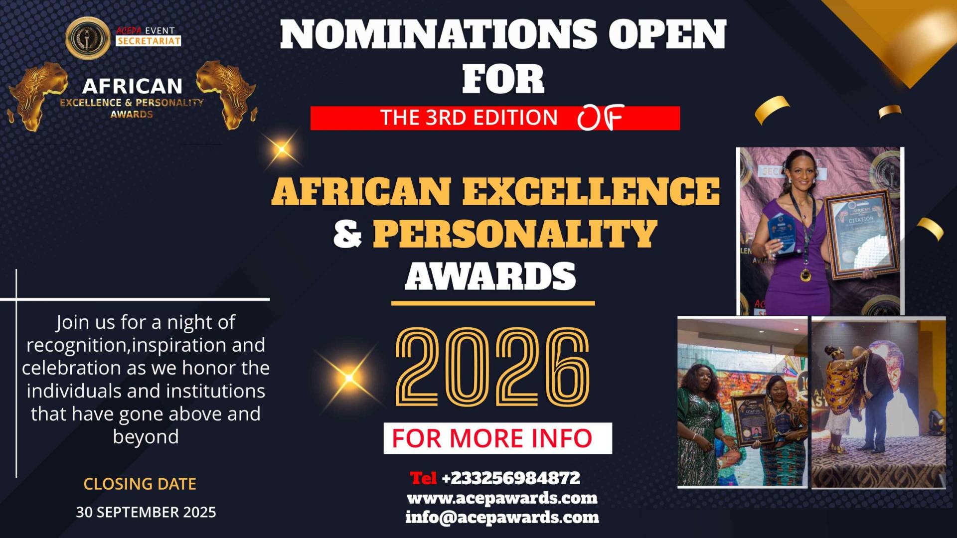 The ACEPA Awards Secretariat welcomes the General Public, Business and Corporate leaders from across Africa to nominate themselves in one of the numerous categories available. All entries are reviewed and validated to ensure that they are eligible for the relevant category.